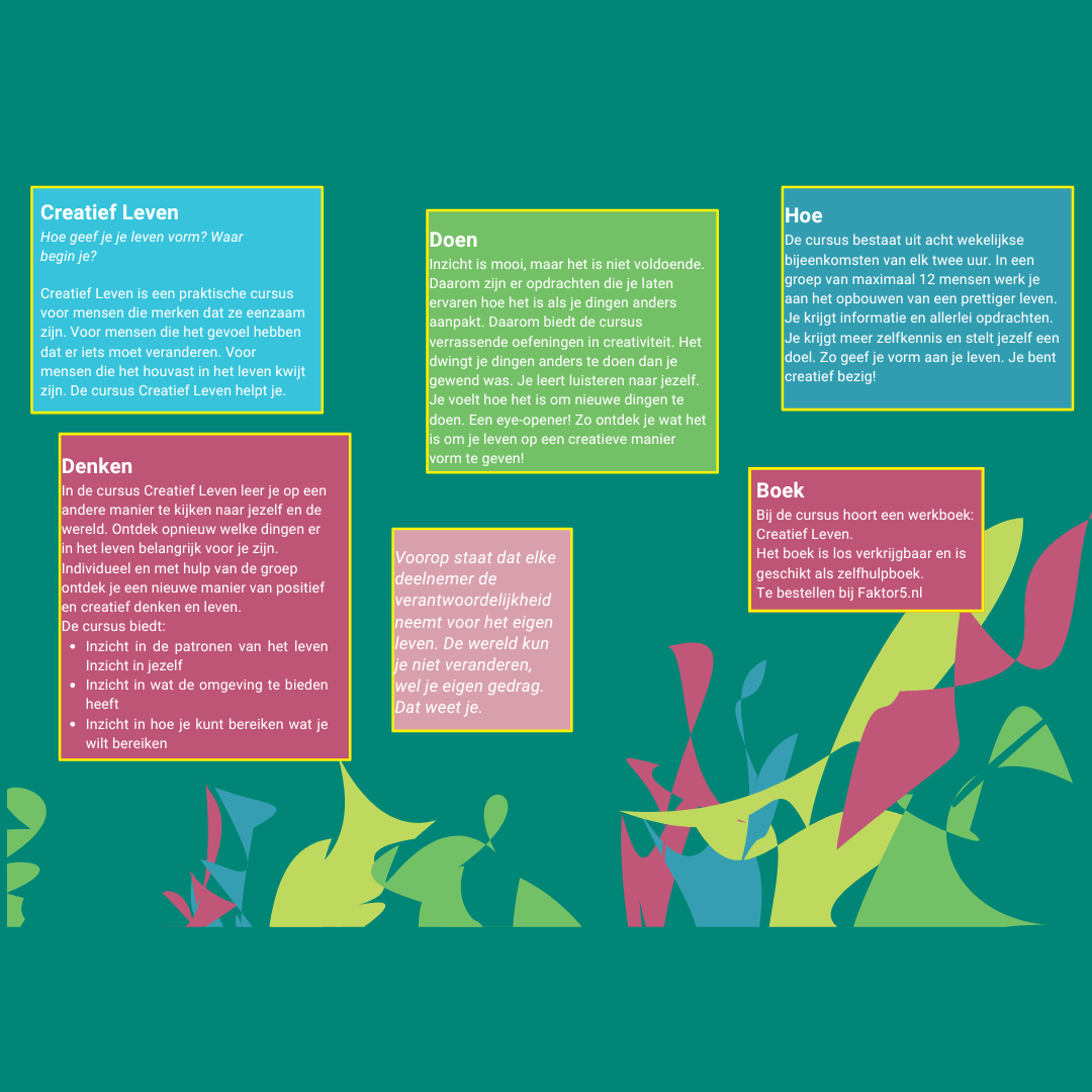 Creatief Leven is een beschermd beeldmerk. De erkende specialisten mogen met toestemming van Faktor5 onderstaande plaatjes gebruiken.